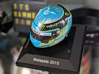 2015 1/2 Scale helmet with drilled holes and added aero including a chin gurney,1/5 scale Malaysia lid and W07 USA GP Minichamps Special WC edition car with figure.