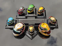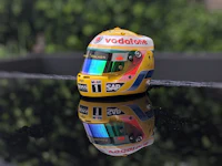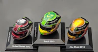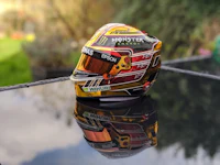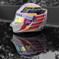 1/2 scale general helmet with aero including chin gurney and black dots for holes, #BillyWhizz decal and red HANs rings. Bell Special edition #44 Abu Dhabi 1/2 scale helmet with aero, tear offs, red anodised screws, gold HANs rings and visor tint. 1/5 Spark Helmet. 1/8 Spark Abu Dhabi Helmet. 1:18 Spark W09 Mexico Special car.