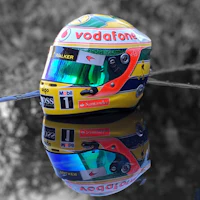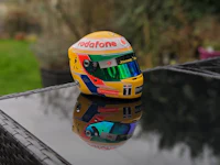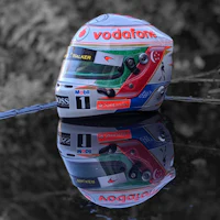 Well, 2009...The number 1 on the car, the world at his feet...On reflection it was really the start of McLaren’s fall from Grace of the previous two years of being a dominant force....The MP4/24 was not a great car for a champion, and due to the explosive start of the Brawn GP car McLaren never really stood a chance. Still managed to get a winning car at least... Here we have the 2009 general release half scale helmet and a 1:18 car. This and the MP4/27 are probably my favourite designs that Lewis drove at McLaren!