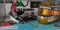 1/2 scale helmet customised to Abu Dhabi spec, 1:5 helmet Abu Dhabi spec and 1:18 W06 Abu Dhabi Minichamps WC special car with figure.